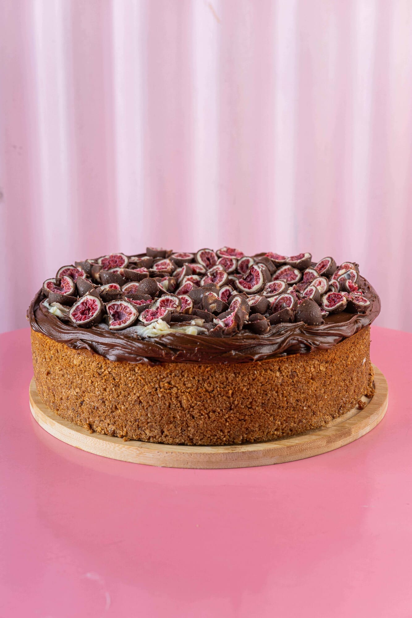 base de galletita maría, cheesecake horneada tipo New York con franuí. decorada con chocolate blanco, nutella y más franuí ;)